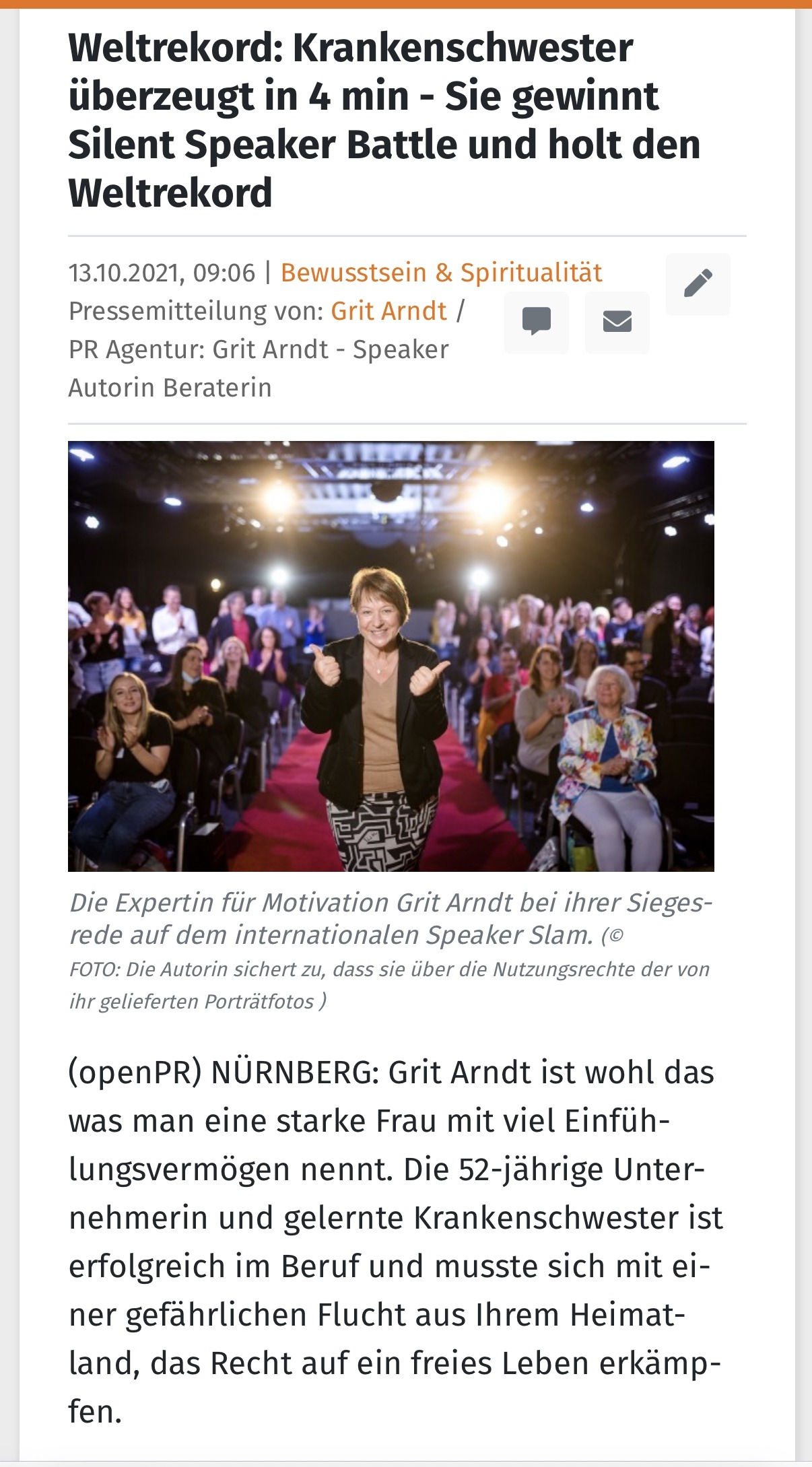 Grit Arndt ist bekannt für ihre authentische, mutige und umsetzungsstarke Kunst. Ihre Vorträge und Seminare inspirieren Teilnehmer, das Gelernte direkt in die Praxis umzusetzen. Sie schafft es, komplexe Themen verständlich, greifbar und motivierend zu präsentieren – stets mit einem Fokus auf Ergebnisse, die sowohl Menschen als auch Unternehmen nachhaltig begeistern.